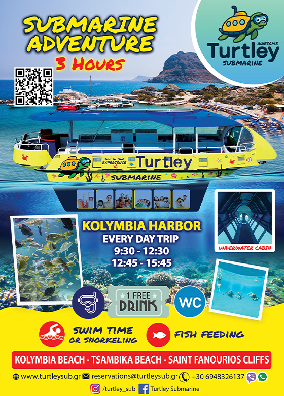 Cruise along Kolymbia beach with panoramic underwater views from our spacious underwater cabin!